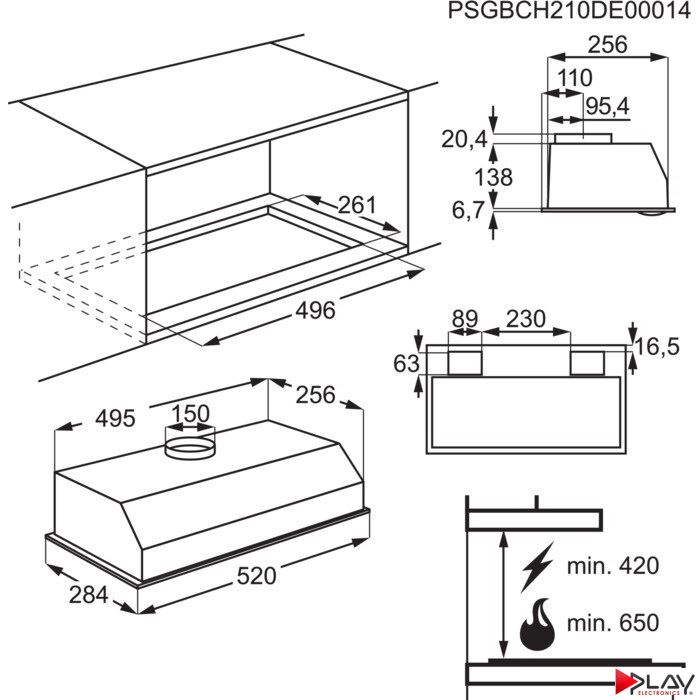 Odsávač pár vstavaný, šírka 52 cm, energetická trieda C, posuvníkové ovládanie, počet rýchlostí: 3,LED bulb, min. vzdialenosť od el. varnej platne (cm) : 42, min. vzdialenosť od plyn. varného panela (cm) : 65, typ filtra: hliníková mriežka, kód vhodného uhlíkového filtra: ECFB03, rozmery: 138 x 520 x 284 mm, nerez