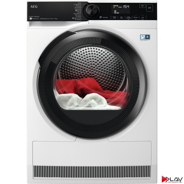 Sušička bielizne, AEG TR939M4ZC AbsoluteCare® Plus 9000, 3D scan, Hlavné technológie: AbsoluteCare® Plus, En. trieda: C, Kapacita sušenia (kg): 9, Spôsob sušenia: Tepelné čerpadlo, Hlučnosť (db): 63, Vnútorné osvetlenie bubna, Parné programy, Program Hygiena, Outdoor program, Programy pre vlnu a hodváb, Woolmark Blue, Rozmery V x Š x H x H max. (mm): 850 x 596 x 638 x 663, Invertor motor so zárukou 10 rokov, Štandardné vybavenie: Odpadová sada na odvod kondenzátu, hrebeň na čistenie kondenzátora, Český panel a popiskylfr