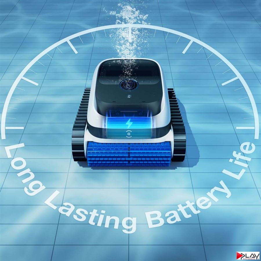 Na jedno nabitie očistí robotický bazénový vysávač ECOVACS ULTRAMARINE P1 dno bazéna s rozlohou až 180 m2. Vďaka vysokovýkonnej lítiovej batérii s kapacitou 4 600 mAh pracuje nepretržite až 3 hodiny v režime Eco. Táto predĺžená doba prevádzky zaisťuje nepretržité čistenie a bazén udržiava bezchybne čistý s minimálnou námahou.