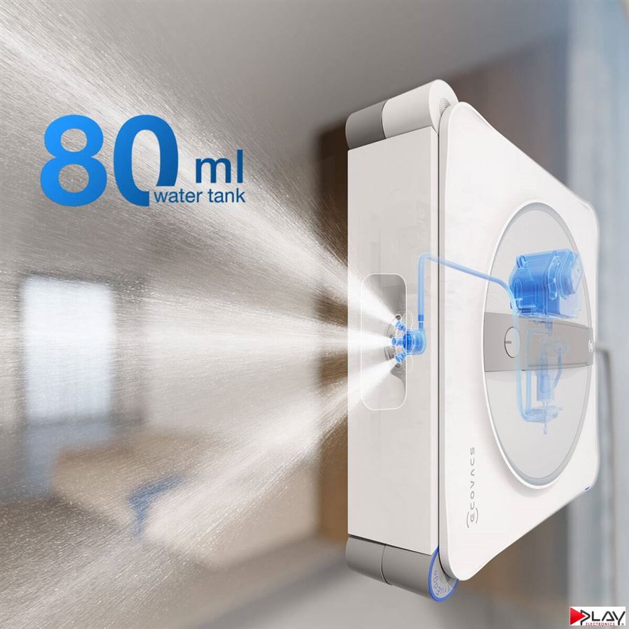 Robotický čistič okien ECOVACS WINBOT W2S má až tri trysky so širokouhlým rozprašovaním vody na dvoch stranách. V spolupráci s čistiacou handričkou z mikrovlákna zabezpečia efektívne čistenie sklenených plôch. Tlak vody je zvýšený o 100 %1 a objem rozprašovanej vody na jeden výstrek až o 133 %2. Vďaka tomu sa všetky nečistoty rozpustia a zotrú jediným ťahom.