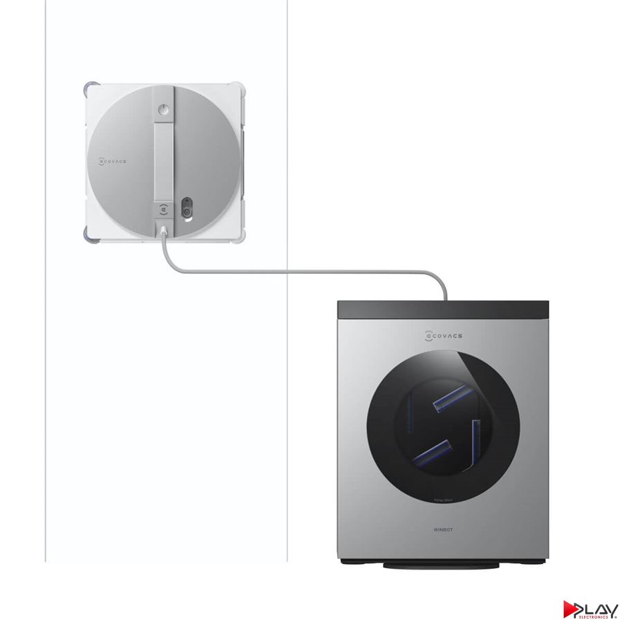 Multifunkčná stanica robotického čističa okien ECOVACS WINBOT W3 OMNI pôsobí s hmotnosťou 10 kg ako protizávažie a navyše je prisatá o podlahu sacou silou viac ako 800 N. Pádu robota za akýchkoľvek extrémnych okolností zabráni aj kombinovaný kábel s vysokou pevnosťou, dodatočné bezpečnostné lanko a automatický zámok navijaka.