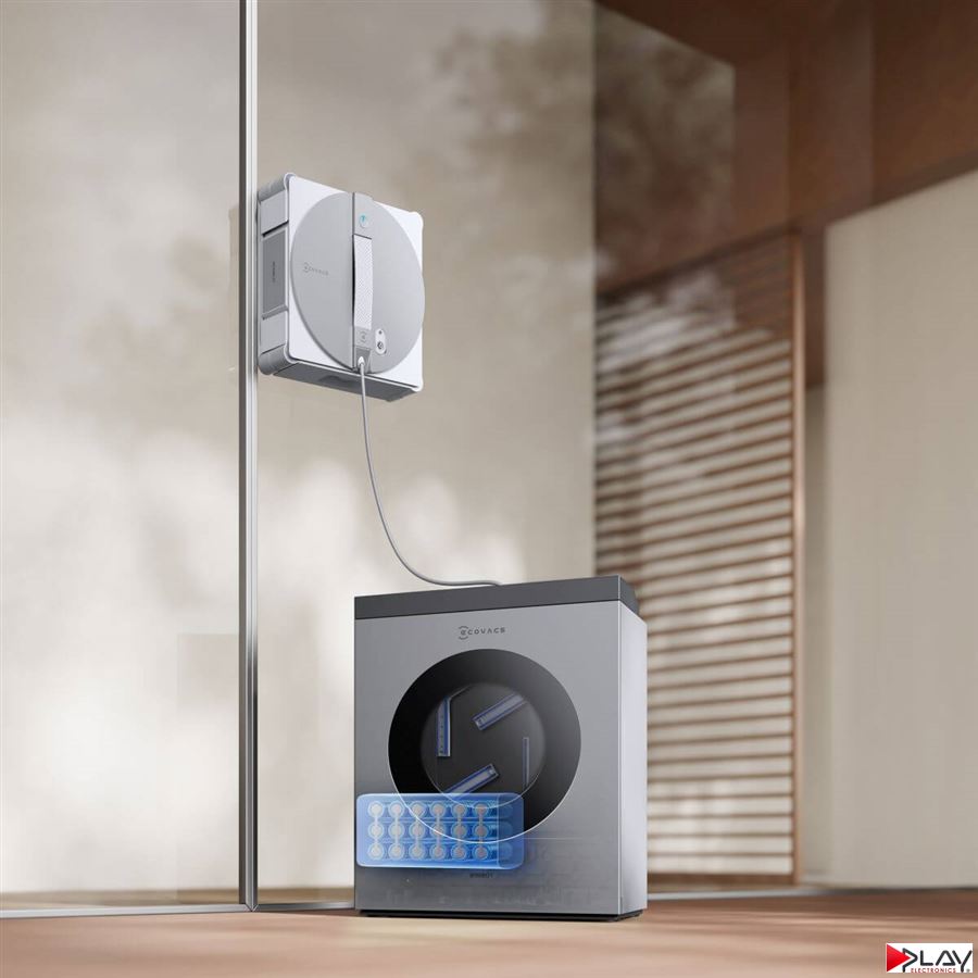 Robotický čistič okien ECOVACS WINBOT W3 OMNI predstavuje revolučnú stanicu, ktorá vyperie čistiace handričky už za 1 minútu. Takto rýchlo budete môcť pokračovať v čistení ďalších okien bez toho, aby ste si zašpinili či namočili ruky. Integrovaná batéria slúži na napájanie robota, vďaka čomu sa nebudete pri umývaní okien potkýnať o vedro s vodou, ani o káble a predlžovačky. Stanica má režim samočistenia a ochranu proti pádu pre bezpečné a bezstarostné čistenie. Prenechajte umývanie okien na WINBOTa. Jednoducho stlačte tlačidlo a vychutnajte si skutočné bezdotykové čistenie.