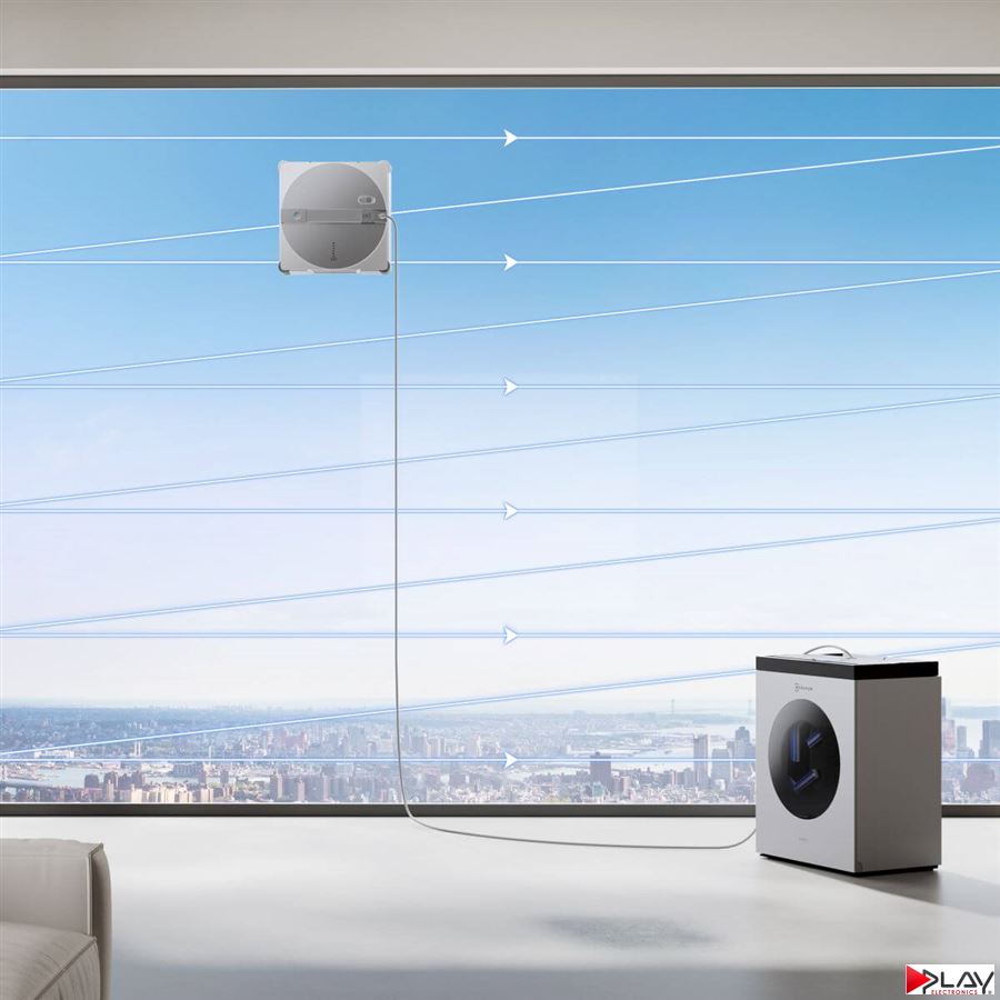 Kompozitné bezpečnostné lanko a napájací kábel sú elegantne spojené do jedného kombinovaného kábla, čím sa predchádza ich vzájomnému zamotávaniu. Až 5,5 metra extra dlhý kombinovaný kábel umožní čistenie aj tých najvyššie položených miest na veľkých oknách. Stanica je navyše vybavená automatickým navíjaním kombinovaného kábla, čím posúva uskladnenie po čistení na úplne novú úroveň. Manipulácia s robotickým čističom okien nikdy nebola nikdy jednoduchšia a organizovanejšia.