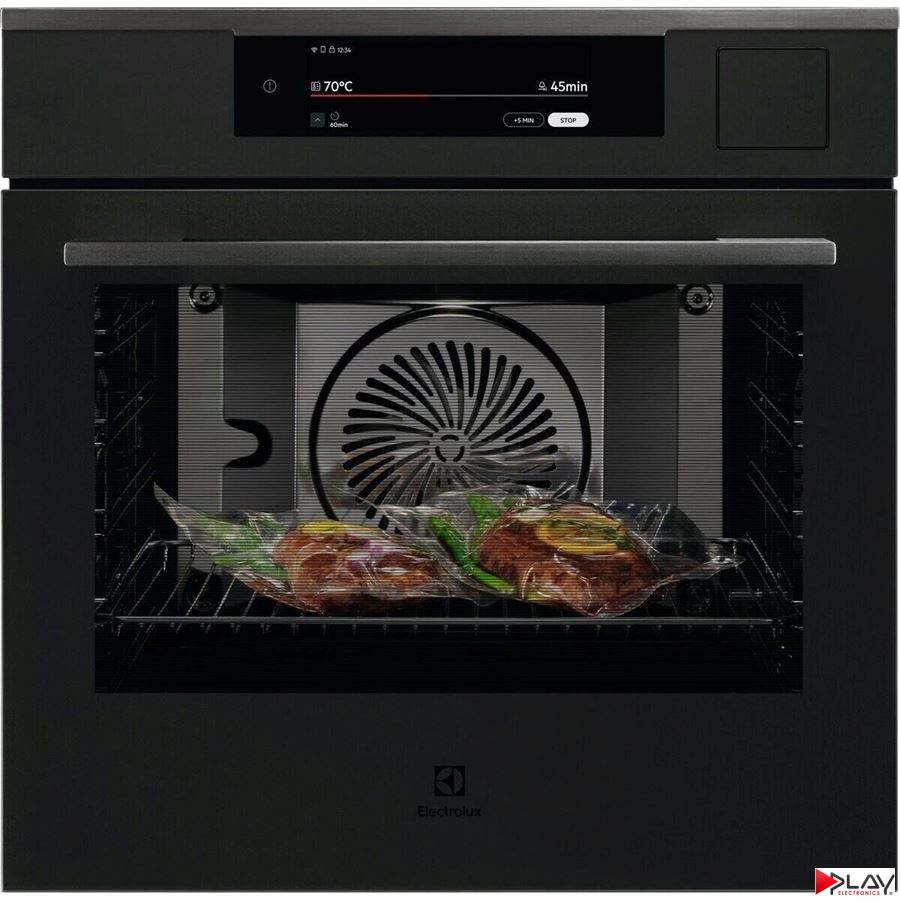 Rúra vstavaná s parnou funkciou, Electrolux 900 PROassist SteamPro, šírka 60cm, energetická trieda A++, technológia SteamPro / Steamify, parné samočistenie, vnútorný objem čistý 70 l, WiFi konektivita, dotykové intuitívne ovládanie, LCD displej, teplotná sonda, Softclosing, Funkcie rúry: Bottom, Pečenie chleba, Rozmrazovanie, Dehydratácia, ProSteam: Steam High, ProSteam: Steam Low, ProSteam: Steam Medium, Refresh, Prihrievanie, Roast, Pomalé pečenie, Varenie Sous vide, Para, Steamify, Kysnutie cesta, Grill, Heat save fan, Horúci vzduch, Hot air & Bottom, Hot air & Top, Udržiavanie teploty, Ohrev tanierov, Zaváranie, ProSteam: Steam Full, Stew, Top, Top & Bottom,farba Matt Black, Vybavenie rúry - plechy: 1 smaltovaný plech na pečenie, 1 plech na zachytávanie mastnoty šedý smalt, 1 Easy2Clean Patisserie tray, 1 sada dierovanej + nedierovanej panvice 2/3, 1 drôtená nerezová mriežka, teleskopický výsuv, rozmery pre zabudovanie (V x Š x H) mm: 590 x 560 x 550