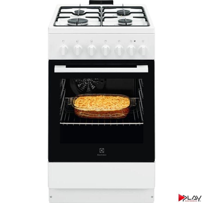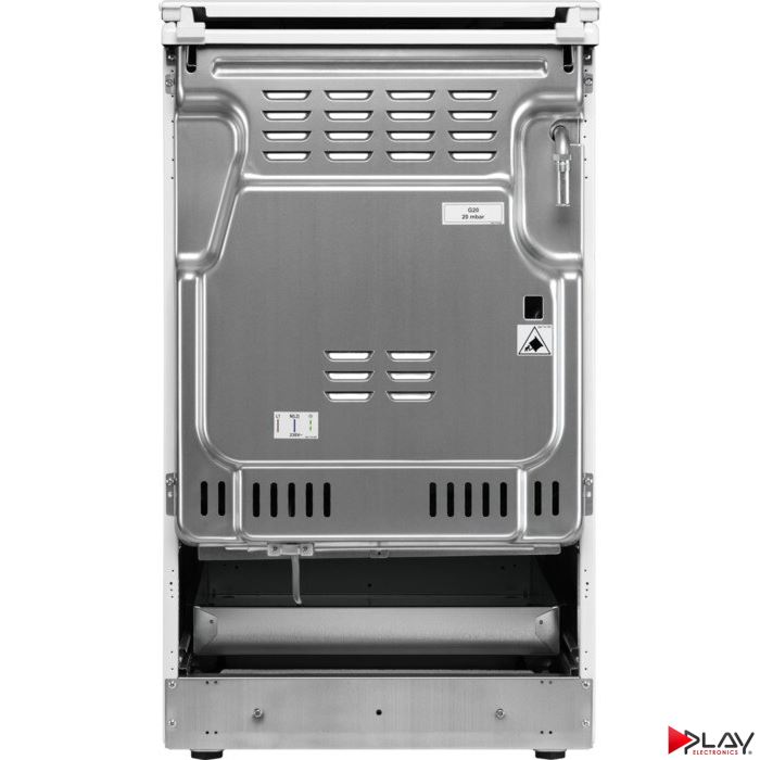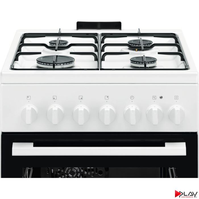 Kombinovaný sporák, elektrická rúra s plynovým varným panelom, šírka 50 cm, ovládanie otočnými gombíkmi, multifunkčná rúra, Funkcie rúry: spodný ohrev, gril, vrchný a spodný ohrev, vrchný a spodný ohrev + ventilátor, Top + Fan (ECO), Vybavenie rúry: 1 čierny smaltovaný plech na pečenie, 1 čierny smaltovaný plech na zachytávanie mastnoty, 1 chrómovaný rošt, rozmery /V x Š x H) mm: 855 x 500 x 600, objem 57 l, energetická trieda A, biely