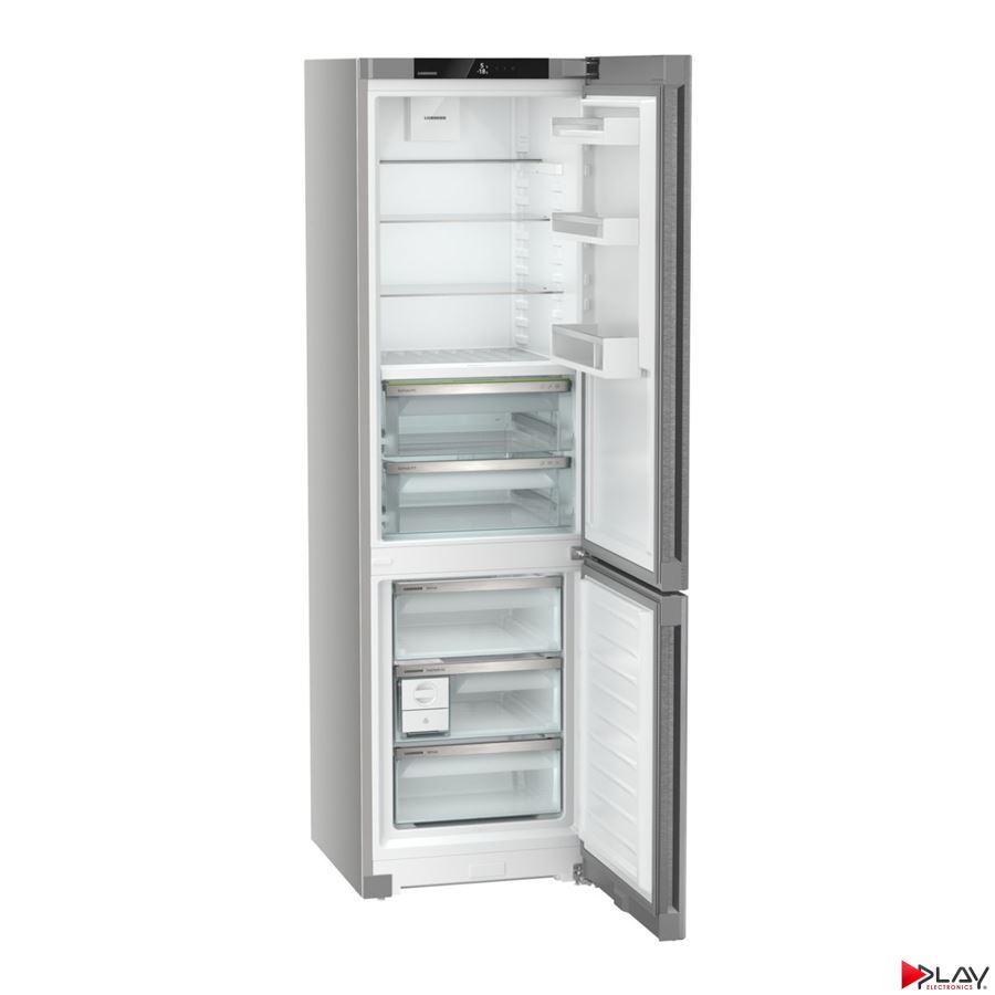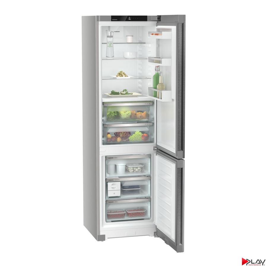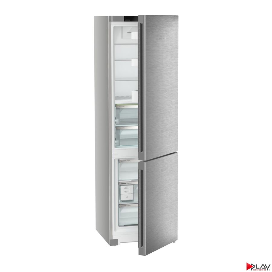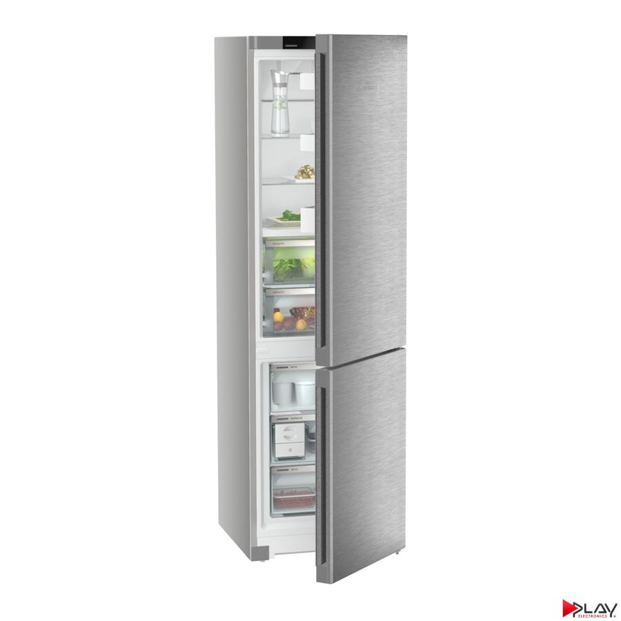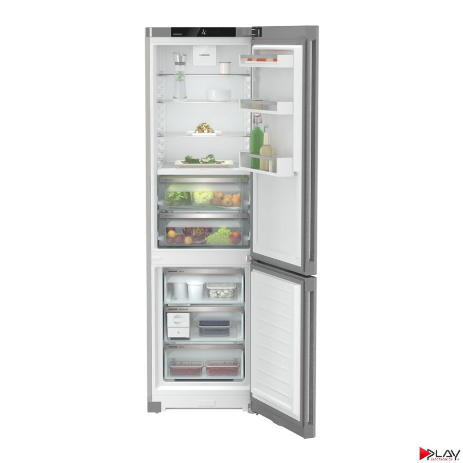 Chladnička kombinovaná LIEBHERR, en. trieda A, NoFrost - chráni mraziaci priestor pred neželanou tvorbou námrazy, objem chladnička/mraznička 258/z toho 99 L je BioFresh/103 L, denná spotreba energie 0,317 kWh / 24 h, monochromatický LC displej Touch & Swipe, regulácia vlhkosti DuoCooling, technológia udržania čerstvosti BioFresh, systém vysúvania zásuvky v chladiacej časti - čiastočne vysúvateľné teleskopické koľajničky, stropné LED osvetlenie, skladovacia doba pri výpadku prúdu 20 h, zmrazovacia kapacita 10 kg/24 h, počet zásuviek v mraziacej časti: 3, hlučnosť 33 dB, rozmery (V x Š x H) cm: 201,5 x 59,7 x 67,5, SmartSteel.