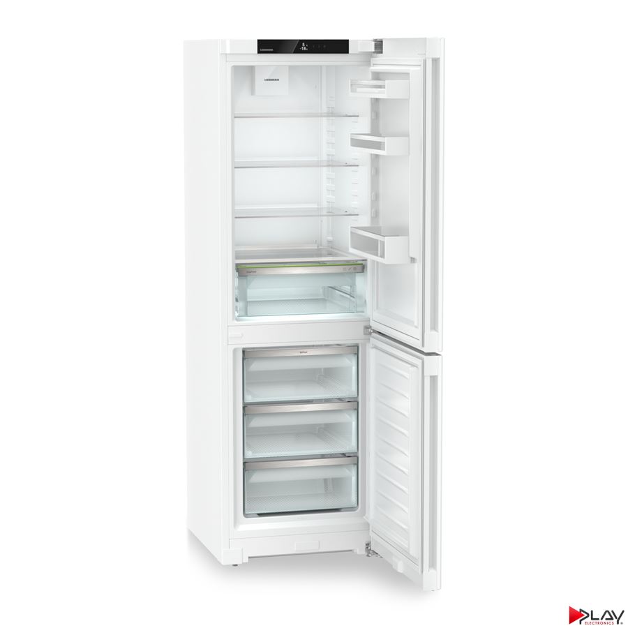 Kombinovaná chladnička s EasyFresh a NoFrost, objem 330l (227/103), energetická trieda D, denná spotreba energie: 0,550 kWh/24 h, DuoCooling, stropné LED osvetlenie, BluPerformance, TouchDisplay, SmartDevice ready, 3 zásuvky mrazničky, doba skladovania pri poruche: 20 h, mraziaca kapacita: 10,00 kg / 24 h, zapustené madlo, SuperSilent, hlučnosť 35 dB, Biela, rozmery v cm ( VxŠxH ) : 185,5 x 59,7 x 67,5