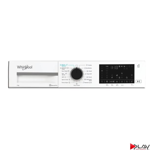 Práčka spredu pl., 9 kg (bubon 65 l), 1400 ot. (B), ener.tr. A / A-10 % (44 kWh/100 cyklov), spotr.vody 44 l, hlučnosť 75 dB (B), invertorový motor, dotykový displej, pripojenie na WiFi + aplikácia HomeWhiz; AdaptiveWash, 6.ZMYSEL, SenseWash, Steam Technology - , FreshCare; v x š x h: 84,5 x 60 x 58 cm, biela + biely panel + čierny rám dverí, ovl. panel s anglickým textom; 10 rokov záruka na motor